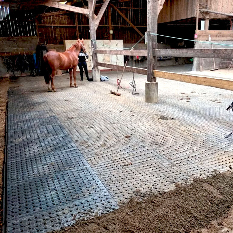 Bodenplatten sorgen für eine stabile und gleichmäßige Oberfläche, wodurch die Verletzungsgefahr für Ihre Pferde verringert wird. Sie dämpfen außerdem Stöße und bieten so optimalen Komfort beim Laufen.