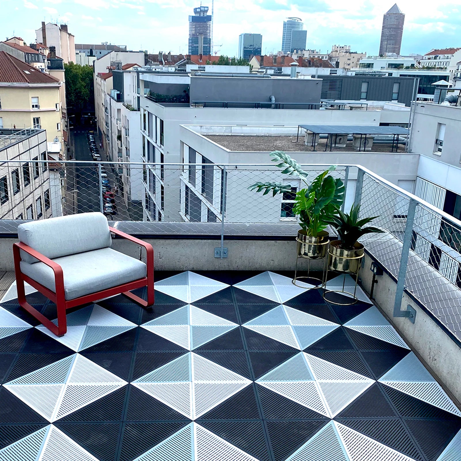 Klickbare Fliesen aus recyceltem Polypropylen für den Außenbereich: Terrasse, Balkon, Poolumrandung