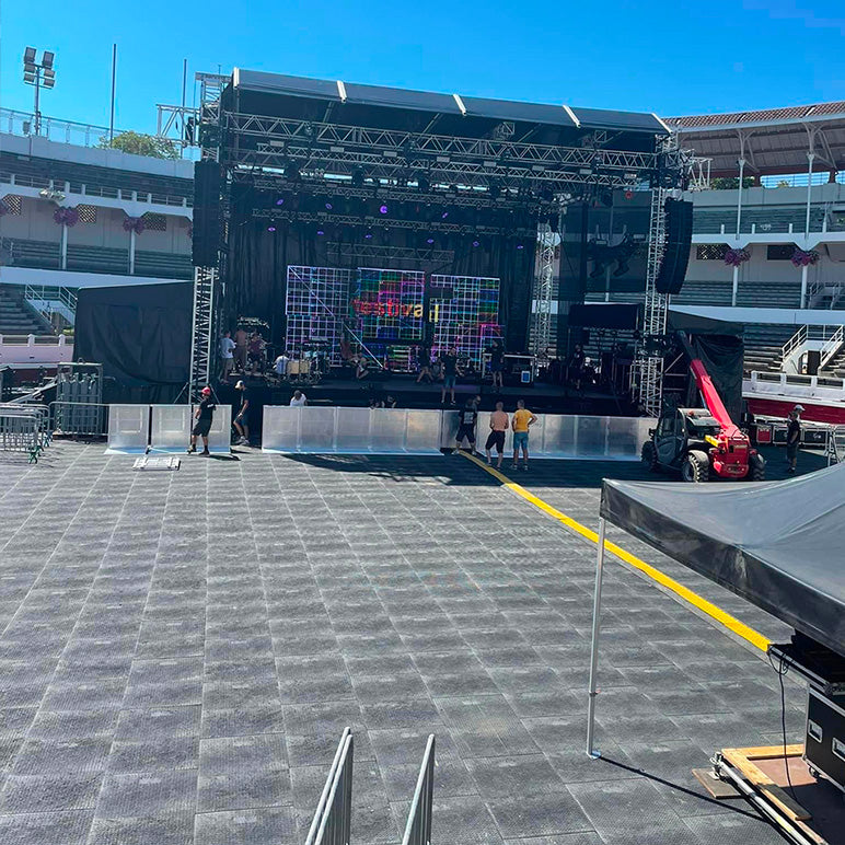 Festivals, trade shows, fairs, outdoor weddings... Ephemeral events often require temporary layouts on fragile ground such as lawns, parks or stadiums. Here, ground protection becomes essential to :