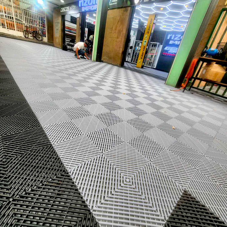 - L'acqua può infiltrarsi sotto le piastrelle? Sì, le piastrelle sono drenanti e impediscono che l’umidità ristagni in superficie.